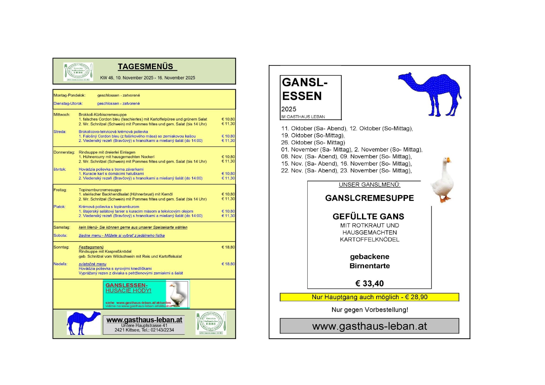 E-mail: info@gasthaus-leban.at | Ruhetage: Montag und Dienstag