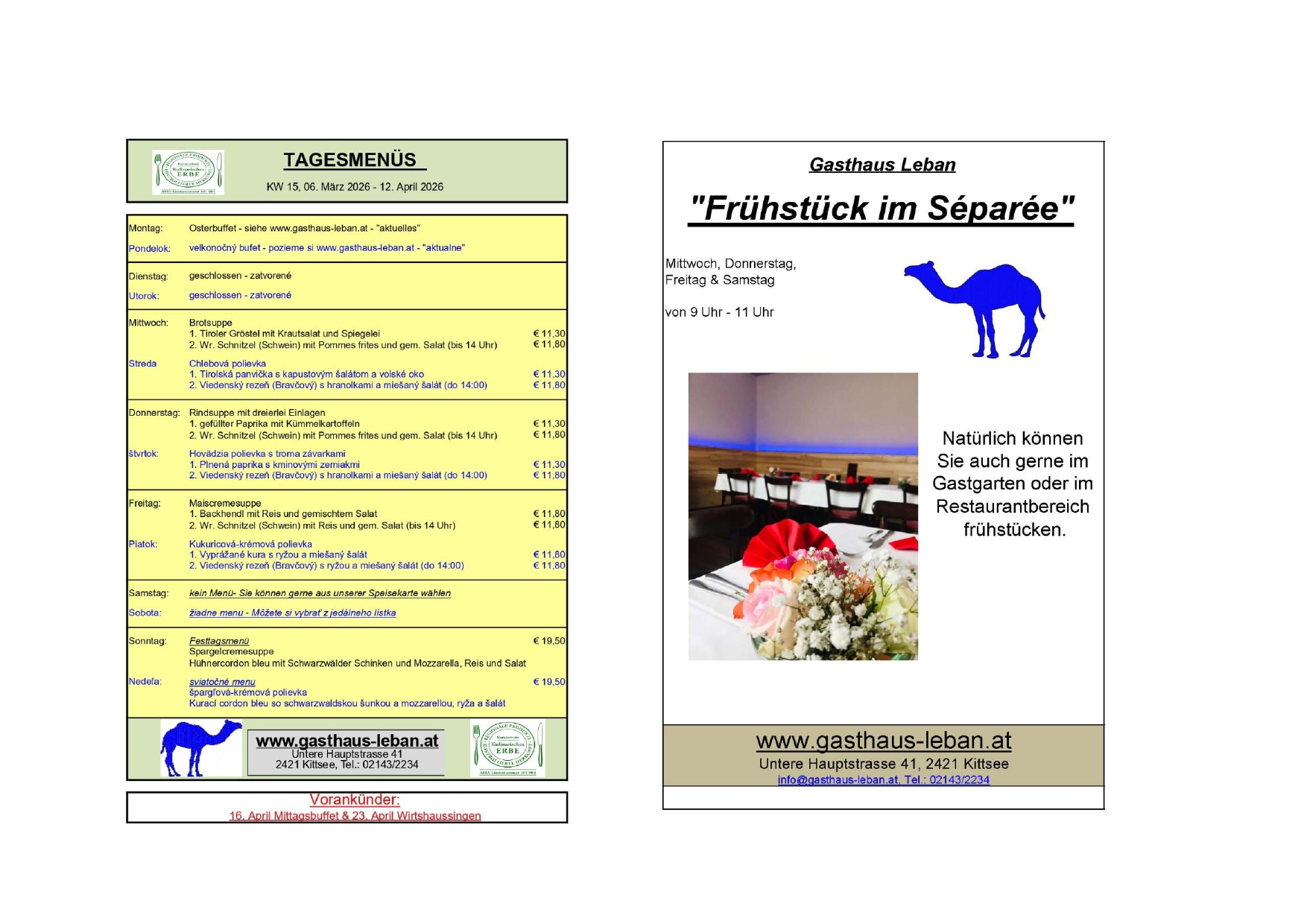 Verbringen Sie ein paar Tage oder auch nur Stunden in unserem Gasthaus, geniessen Sie die familiäre Atmosphäre und freuen Sie sich auf die Köstlichkeiten, die in der Küche zubereitet werden. Verbinden Sie einen Tag in Bratislava "nur 10 Autominuten von Kittsee entfernt" mit einem Aufenthalt in unserem Gasthaus.